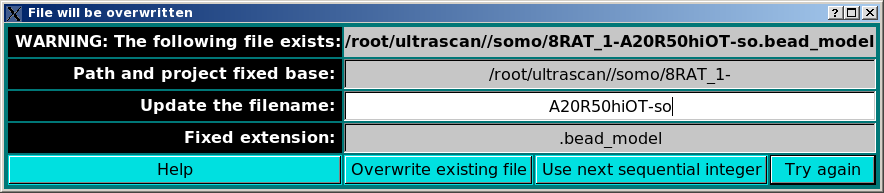 This pop-up screen opens when an existing filename is found and The Overwrite existing filenames checkbox is not selected. File extensions covered by this check are .bead_model, .beams, .dat, .hydr_res, .csv and .asa_res. The possible operations are:
